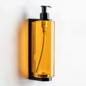 STAFFA DI SUPPORTO NERA IN ABS PER PUMP DISPENSER CON BIADESIVO